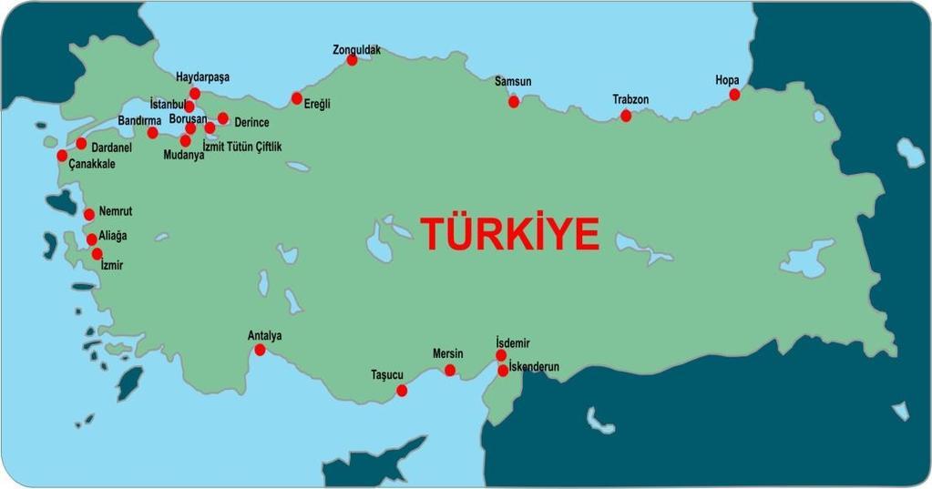 Marport is gelegen in Beylikdüzü, Istanbul, en begon zijn activiteiten in 1996 als de Limar Kumport Terminal (momenteel bekend als Marport East Terminal). Het is uitgebreid met de Marport Main Terminal in 2001 en de Marport West Terminal opgenomen in de structuur in 2003. De jaarlijkse overslagcapaciteit van Marport heeft de 1,9 miljoen TEU bereikt. Kumport Container Terminal is strategisch gelegen aan de Europese kant van Istanbul, 22 mijl ten westen van de Straat van Istanbul. Kumport Terminal heeft uitstekende verbindingen van en naar het achterland. Kumport startte zijn terminalactiviteiten in 1994. Het is nu rechtstreeks verbonden met meer dan 140 locaties op vijf continenten, zoals u kunt zien in havens in Turkije kaart. SOCAR Aliağa Terminal is de eerste haven in Turkije die toegankelijk is voor schepen met een capaciteit van 18.000 TEU en een geïntegreerde dokstructuur van 700 meter. Het is de grootste geïntegreerde terminal in de Egeïsche regio, met een initiële behandelingscapaciteit van 1,5 miljoen TEU containers.